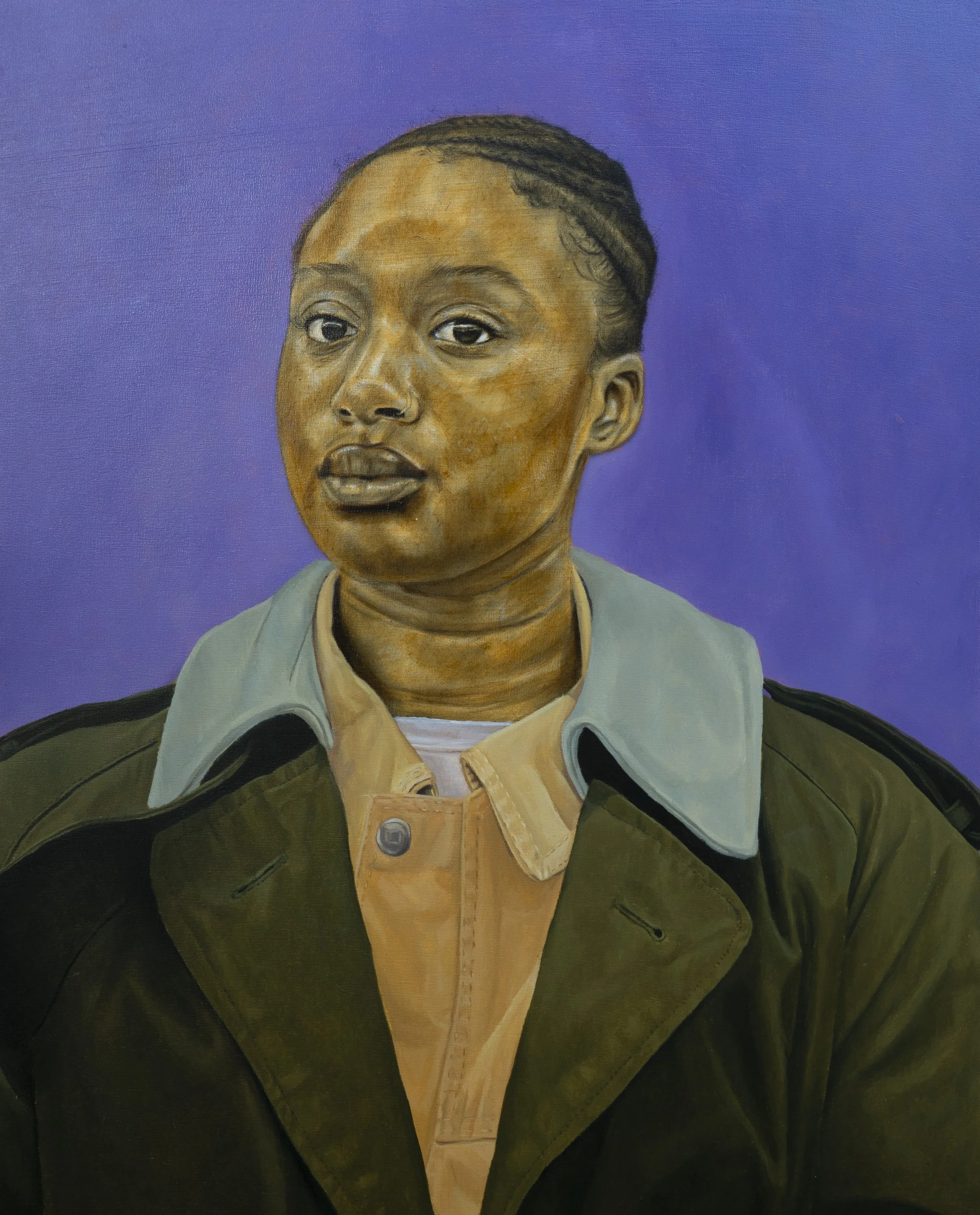 Double Trench Coat (Nfana Ibaga).2026 Acrylic and Charcoal on Panel 16 X 20 inches Inquire Back to 2026